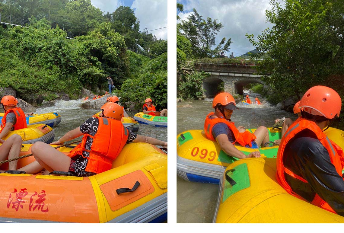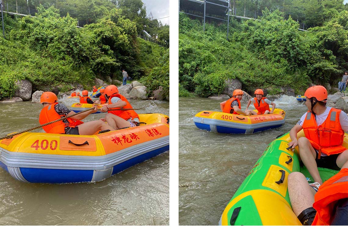 在漂流中,家人們你中有我,我中有你,乘風破浪,激流勇進。體現了利悅團結拼搏的精神。