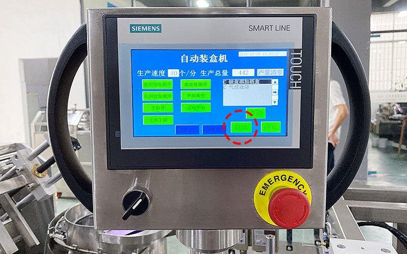 更具有產(chǎn)品進(jìn)盒不到位或卡料自動停機(jī),缺紙盒自動報警,無產(chǎn)品不開盒,觸摸屏自動顯示故障,并停機(jī)報警,顯示機(jī)器操作及維修方式。