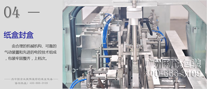 紙盒槽座可調,適用于多規格紙盒裝盒,且調節方便,紙盒不足時機器自動停機,并觸摸屏提示添加紙盒。