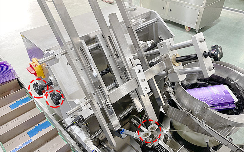 機器紙板倉人工手動調節機構及紙盒自動開盒吸管。